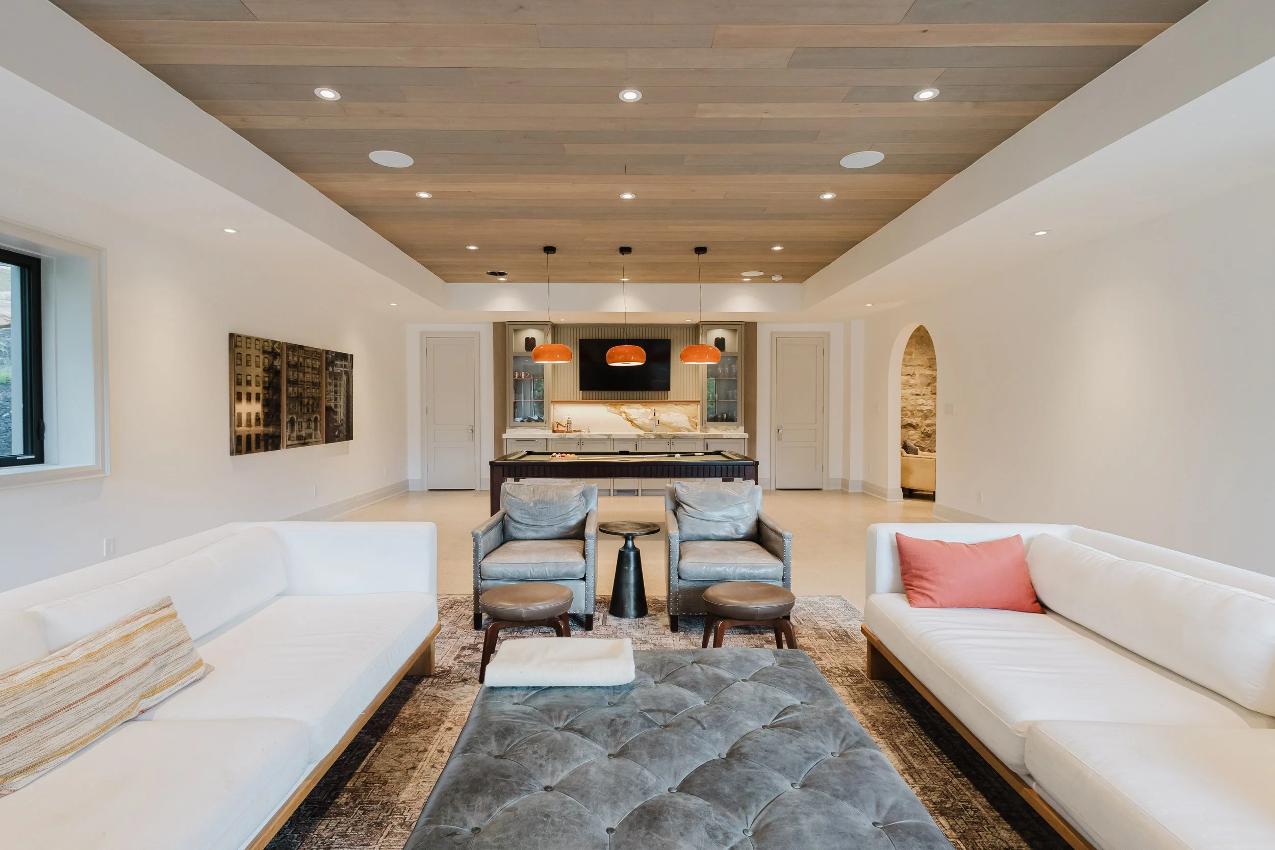 This custom-built home was designed and built from the ground up by the Websterbilt team. Full site planning, conservation and town approval, and construction were done in-house. This project includes the stately 5432 Sqft home with pool, cabana, golf course, and clubhouse. Blending traditional materials and techniques like full-bed limestone masonry with modern elements like floor-to-ceiling windows makes this house pop!